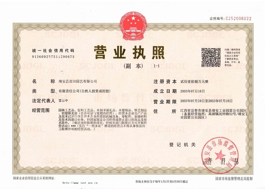 Jing'an County Yu Tianyuan Art Co., Ltd. is located in Gaohu Town, Jing'an County. It is a one -hour drive from Changbei Airport and Nanchang West Station. The transportation is very convenient. The company was established in July 2003. It covers an area of more than 330 square meters. It mainly produces and sells wooden garden gardens products and outdoor leisure furniture and other products, and is sold to Europe and the United States and other countries and regions.